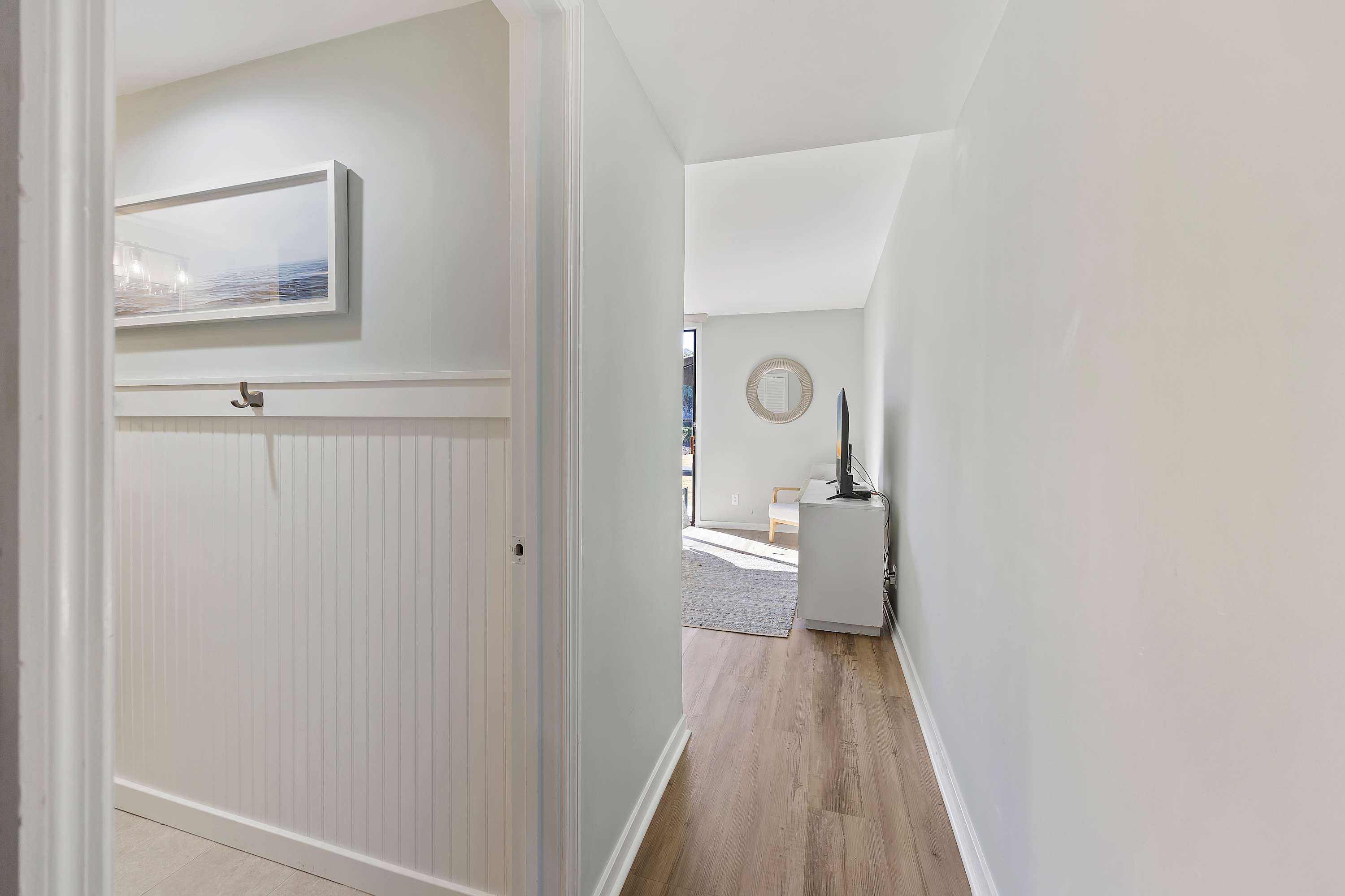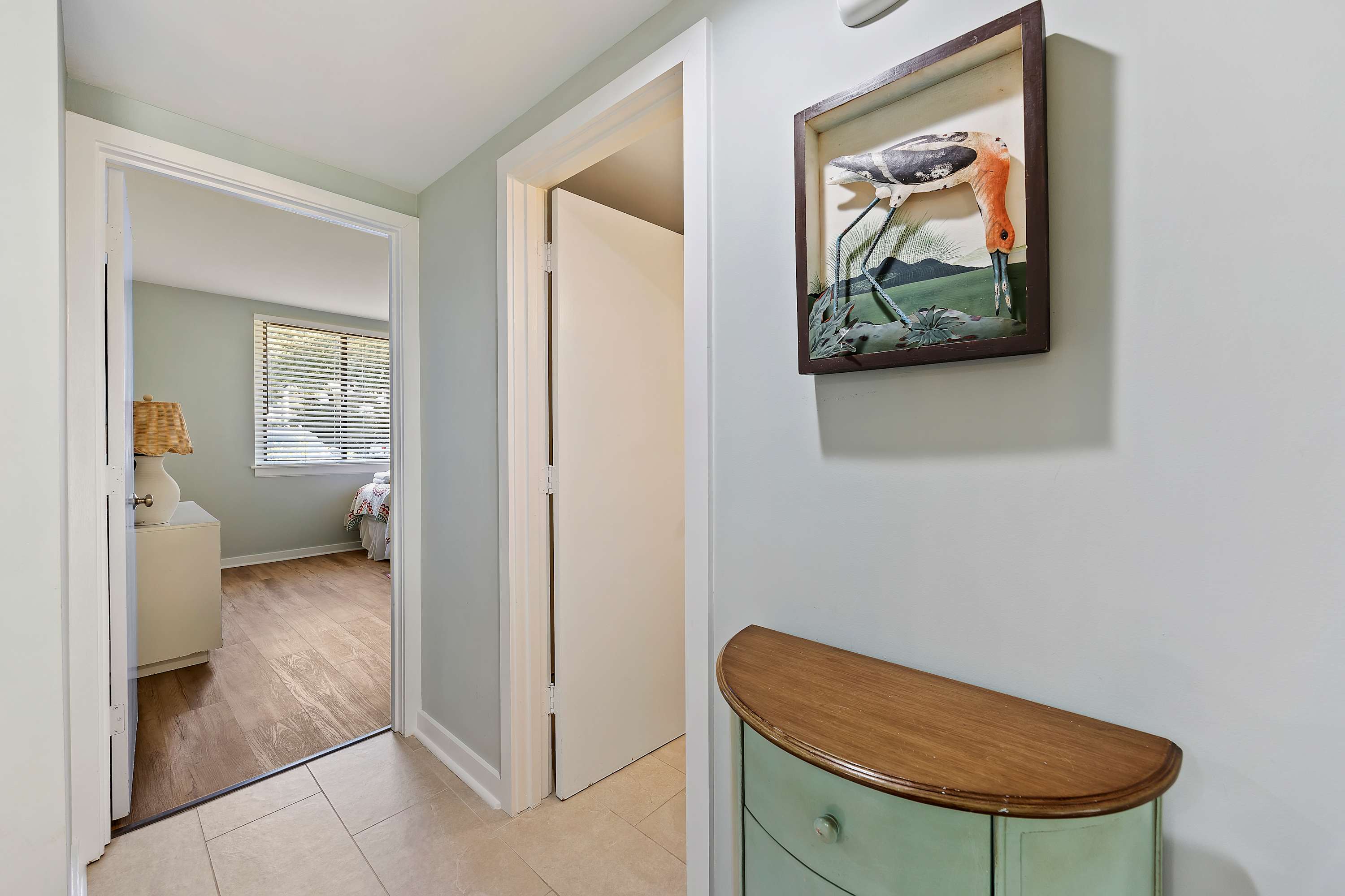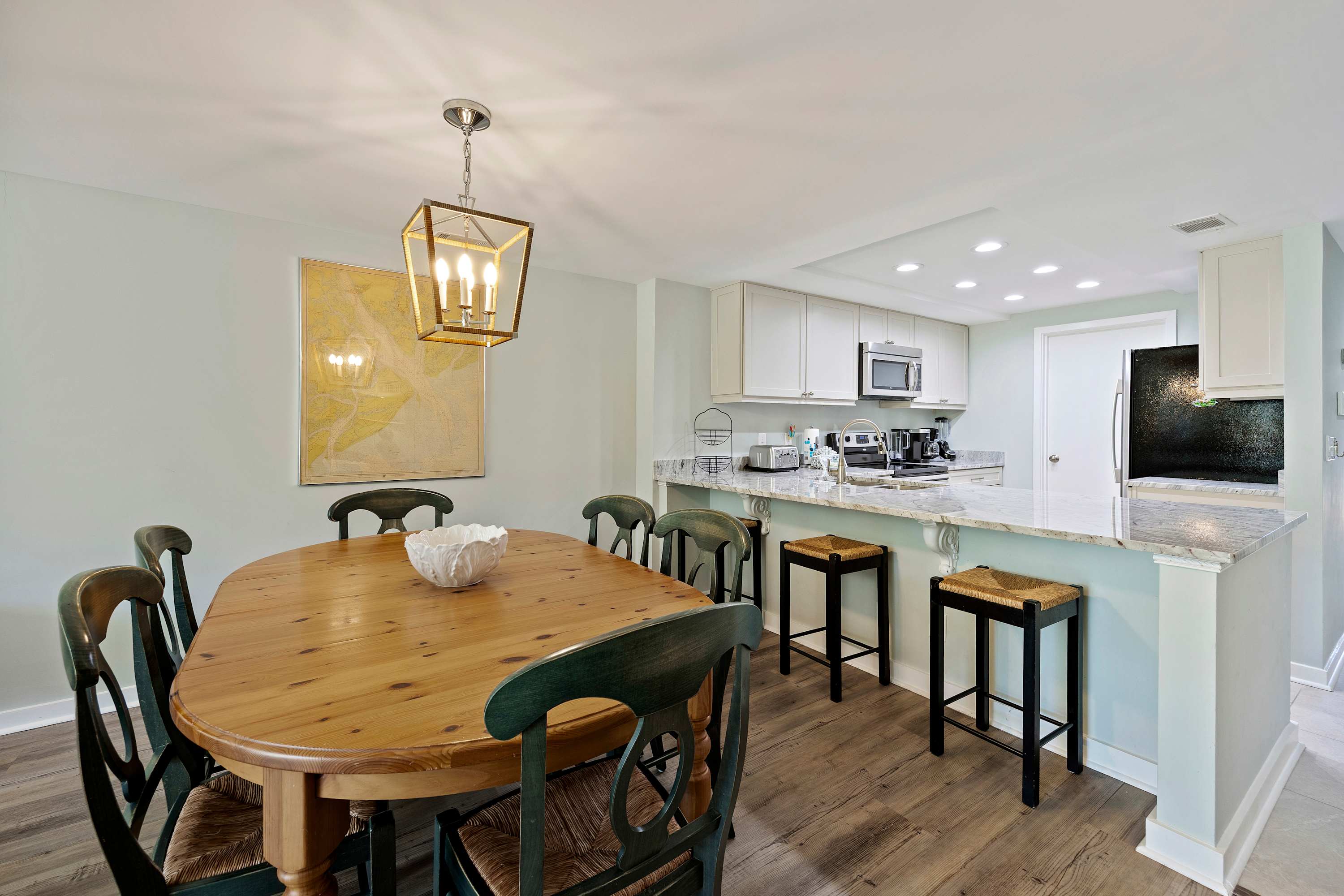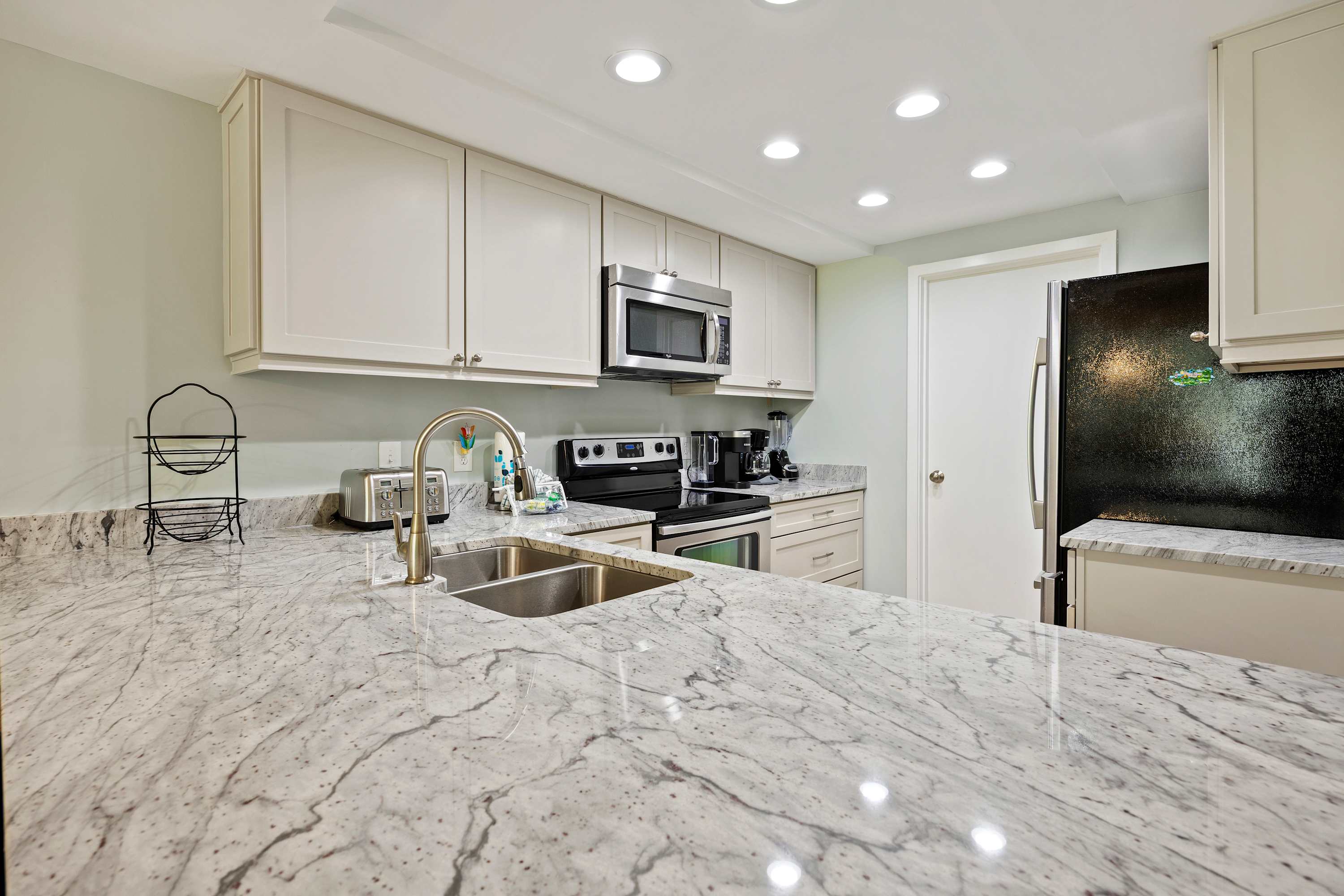 Fully Equipped Kitchen: Everything you need, including full-sized appliances, a traditional coffee maker, blender, and cooking utensils. Conveniently located with washer and dryer with ironing essentials in the utility closet.