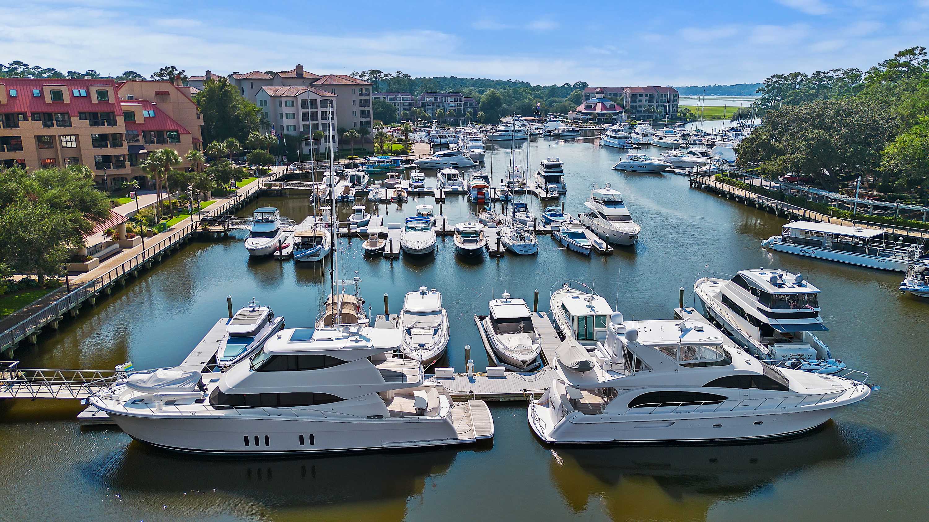 Guests chartering watersports, dolphin tours, fishing, or sunset cruises right in the marina