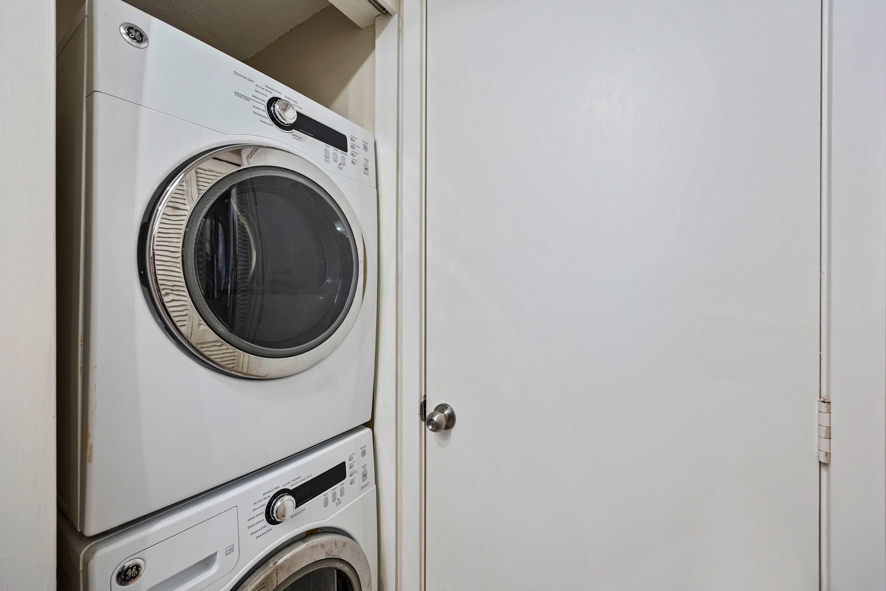 Stackable washer and dryer conveniently located in the kitchen