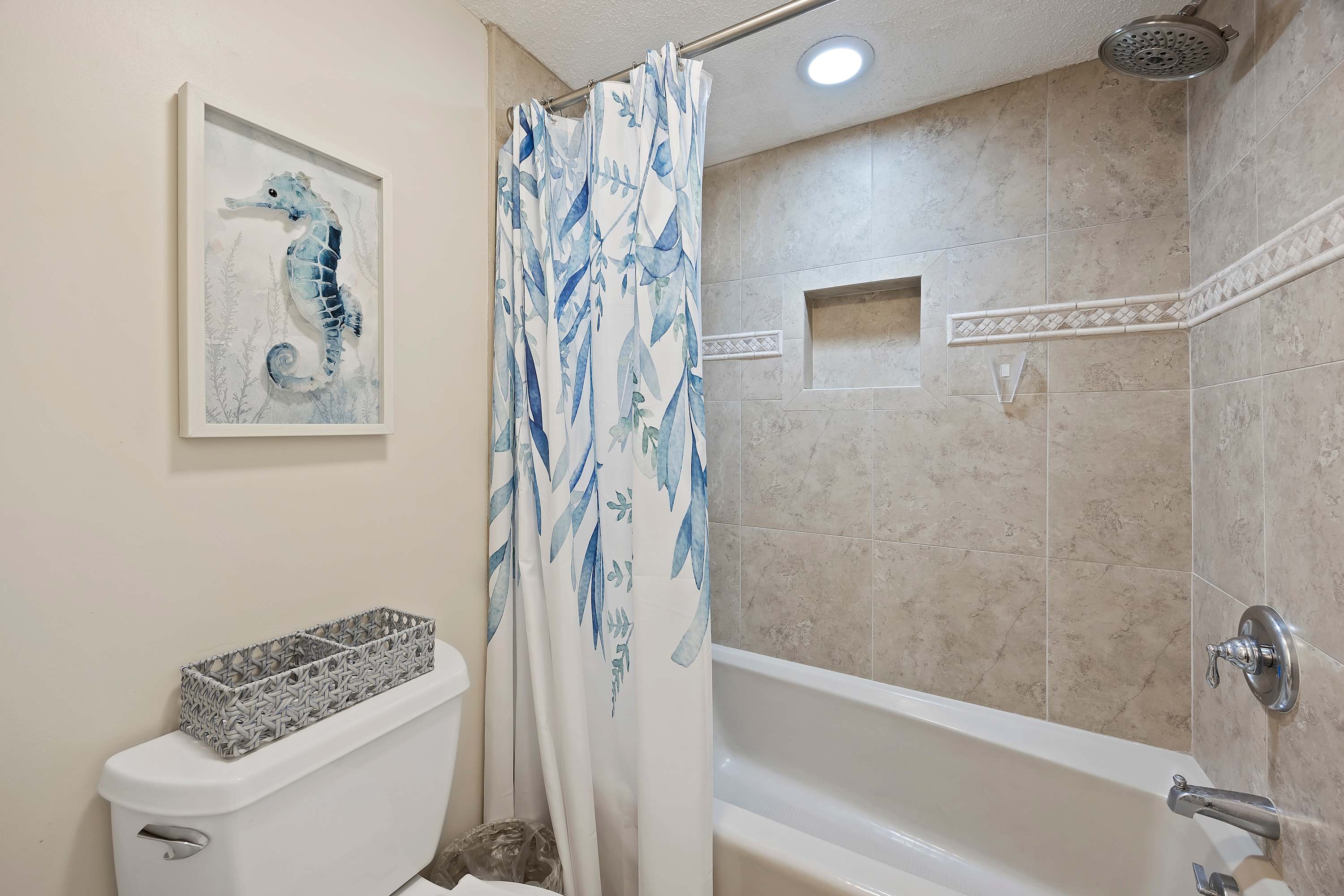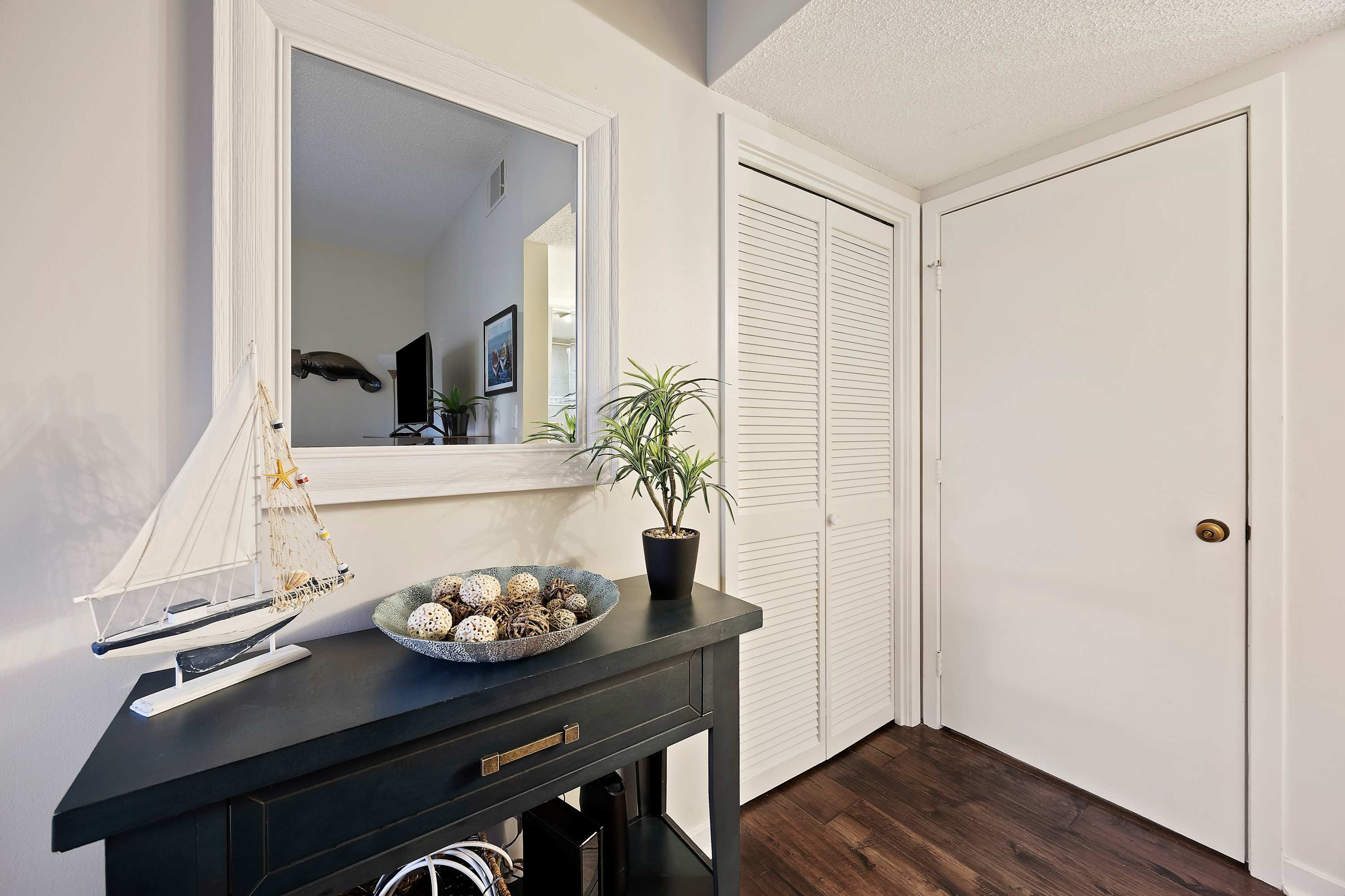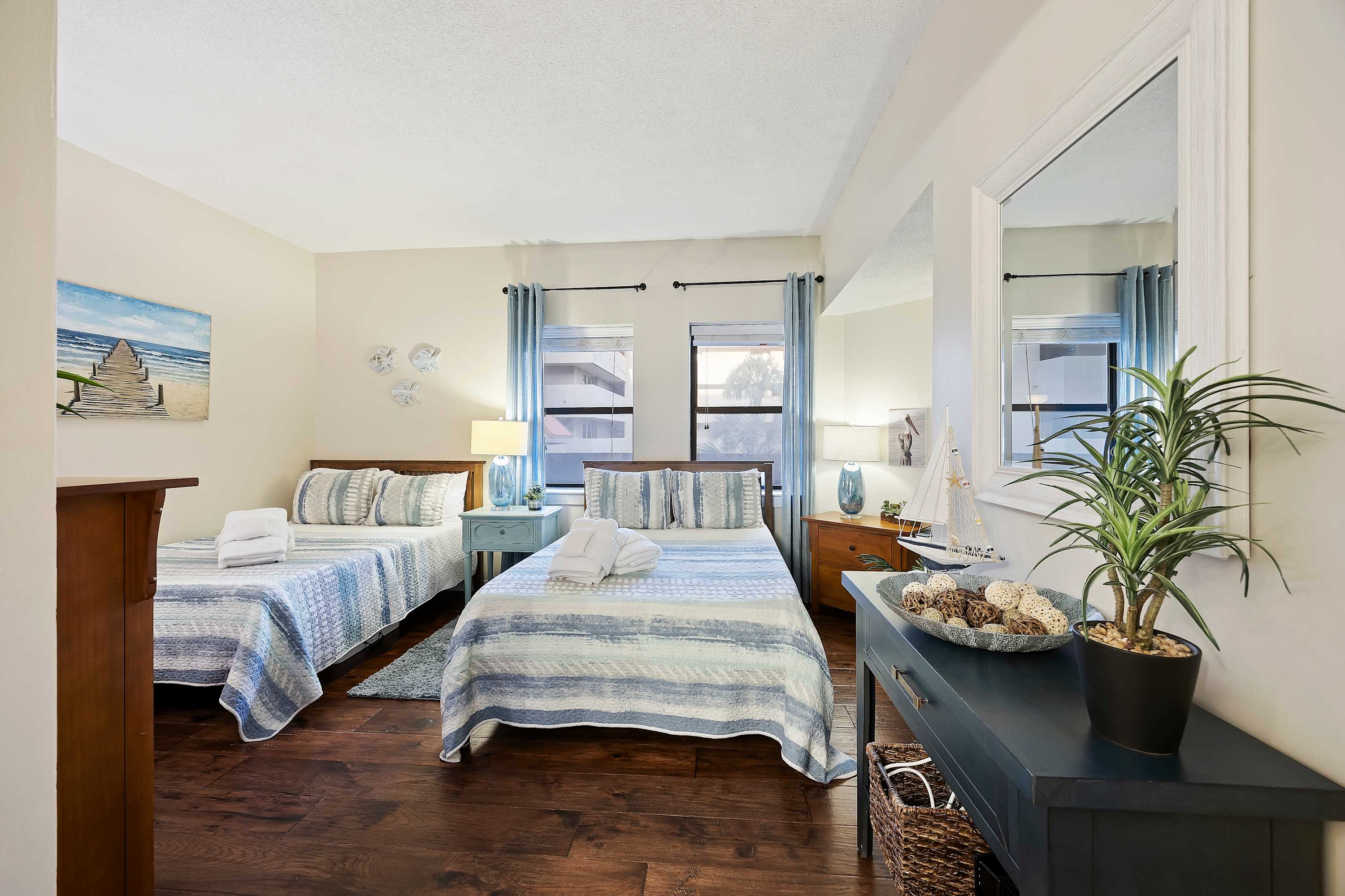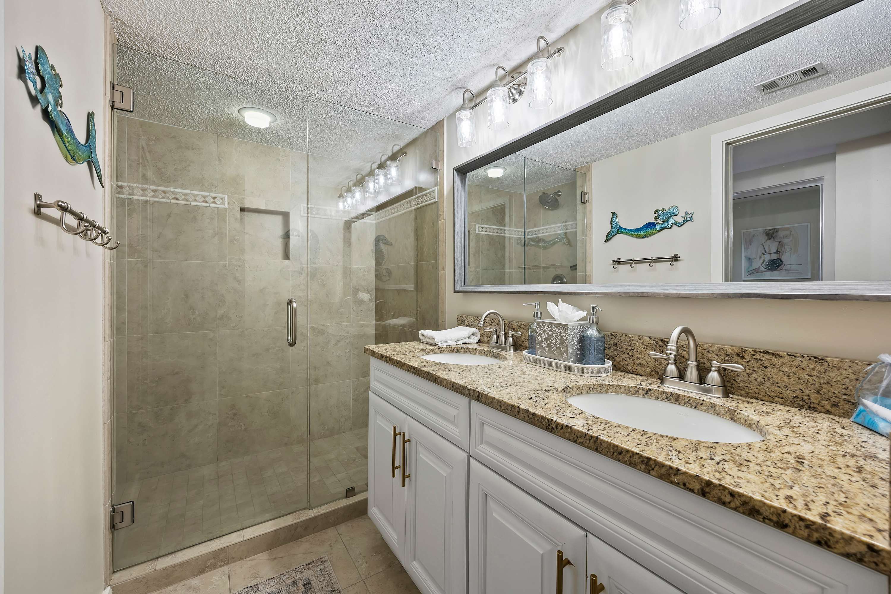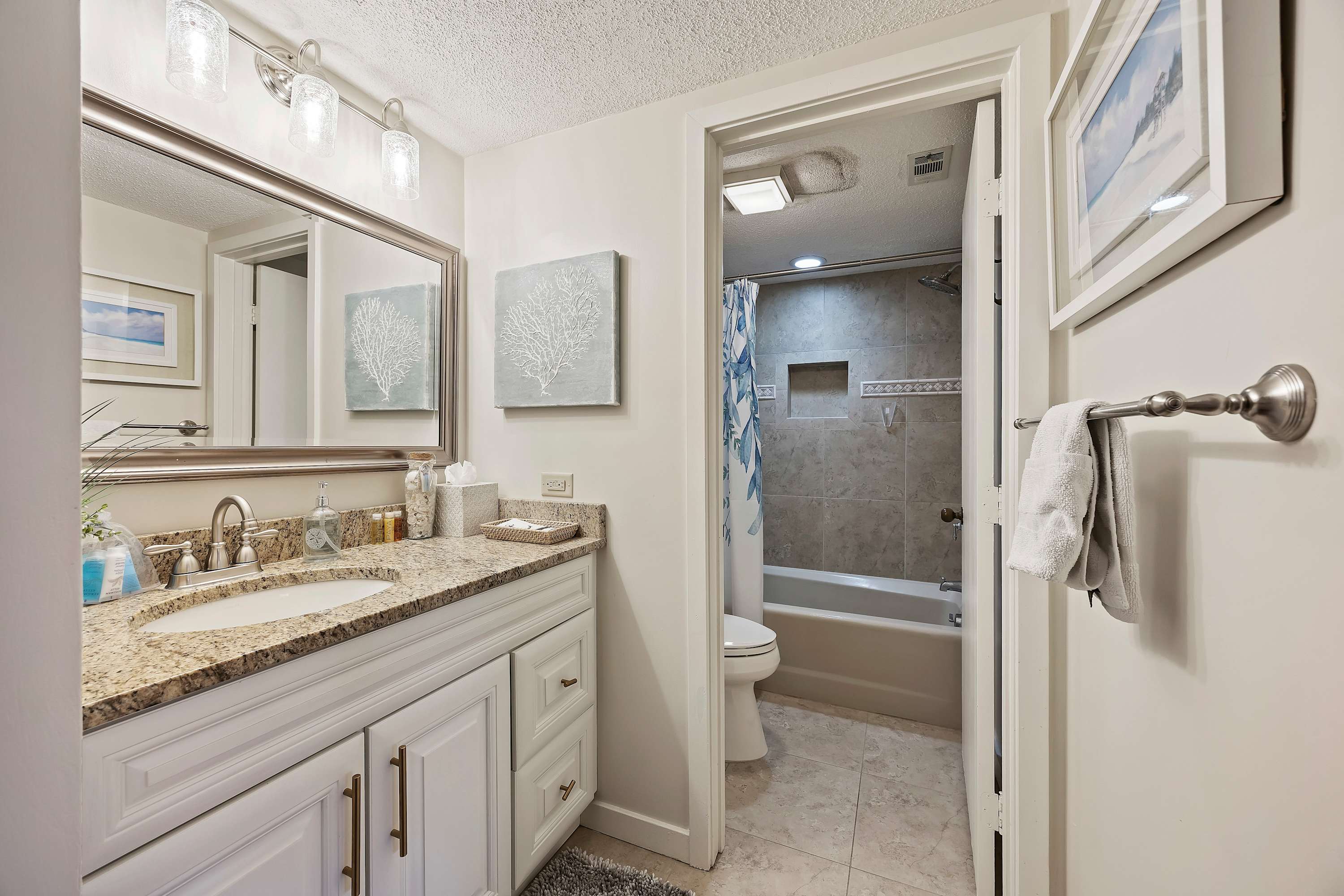 Step out onto the spacious private balcony, furnished for outdoor dining and relaxing. Overlooking the iconic Mermaid Statue, the balcony sits just above the marina’s shops and restaurants, making it easy to stroll below for waterfront dining, live music, and sunset walks. A handy balcony closet is stocked with beach gear and beach towels for guest use.