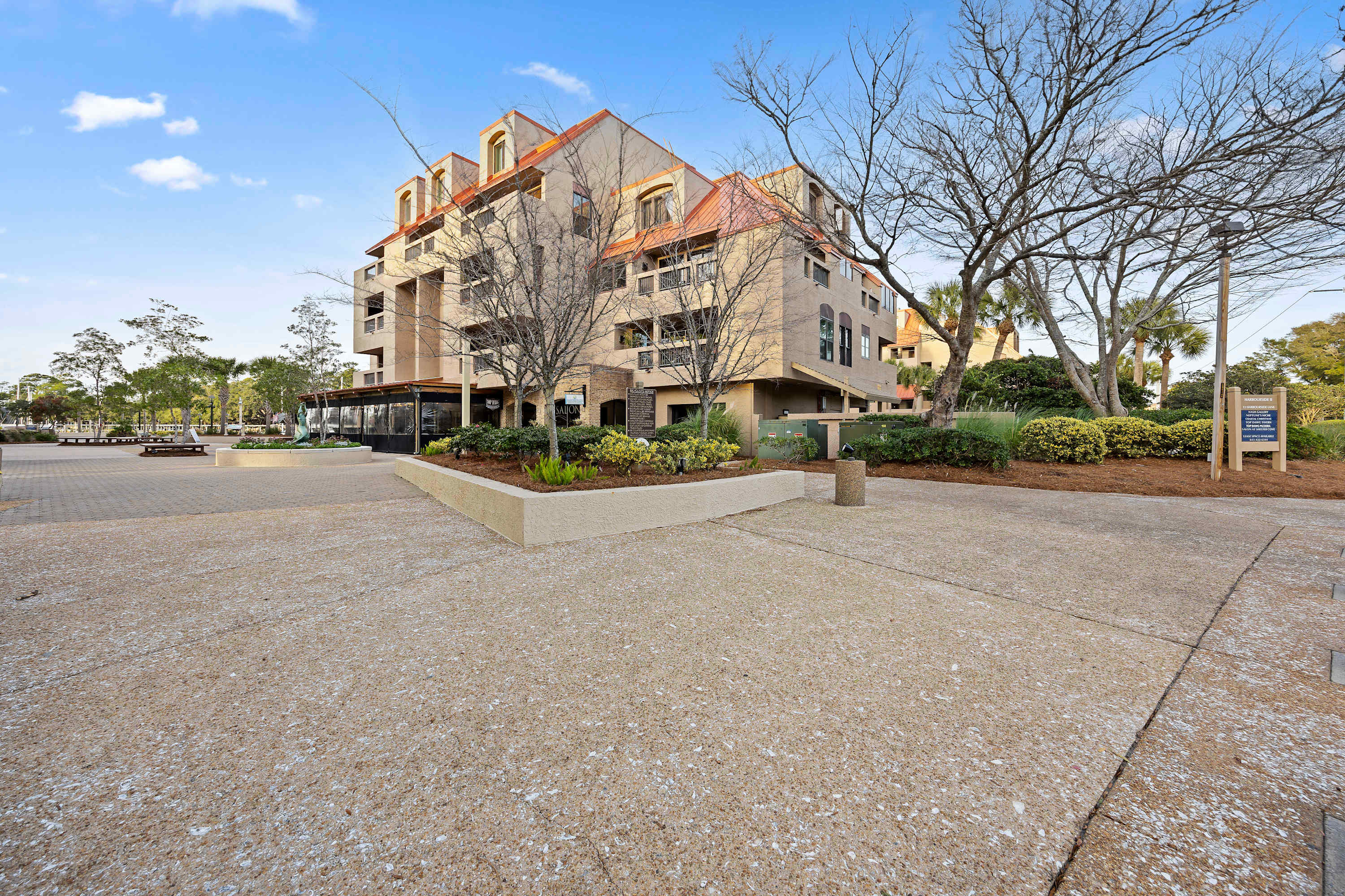 Welcome to 7132 Harbourside II, a beautifully located first-floor villa (one level up from parking) in the heart of Shelter Cove Harbour & Marina. With elevator and stair access, this single-story condo offers the perfect blend of comfort, convenience, and coastal charm—ideal for families, friends, golf getaways, or anyone who wants to park the car and enjoy vacation without driving.