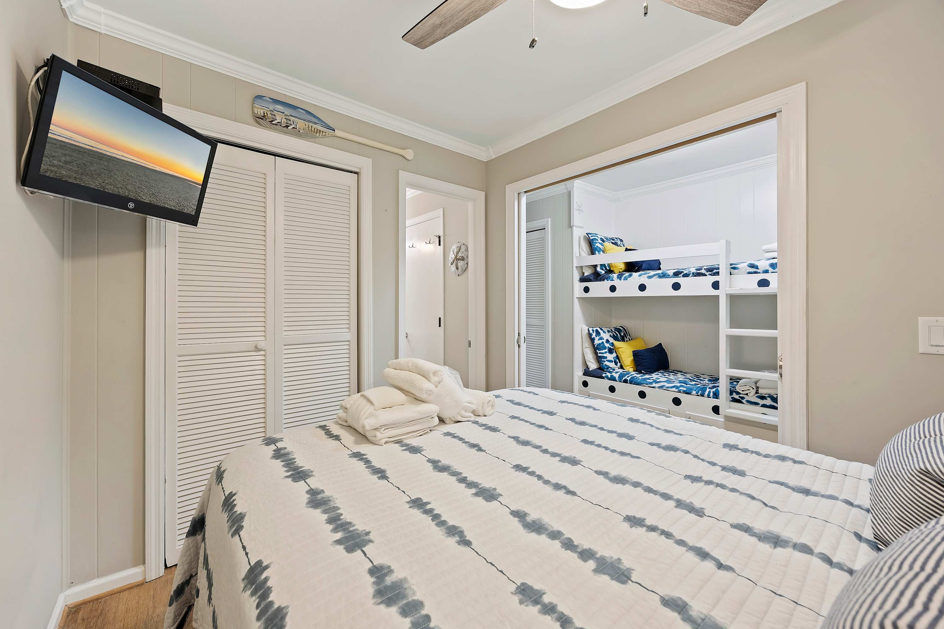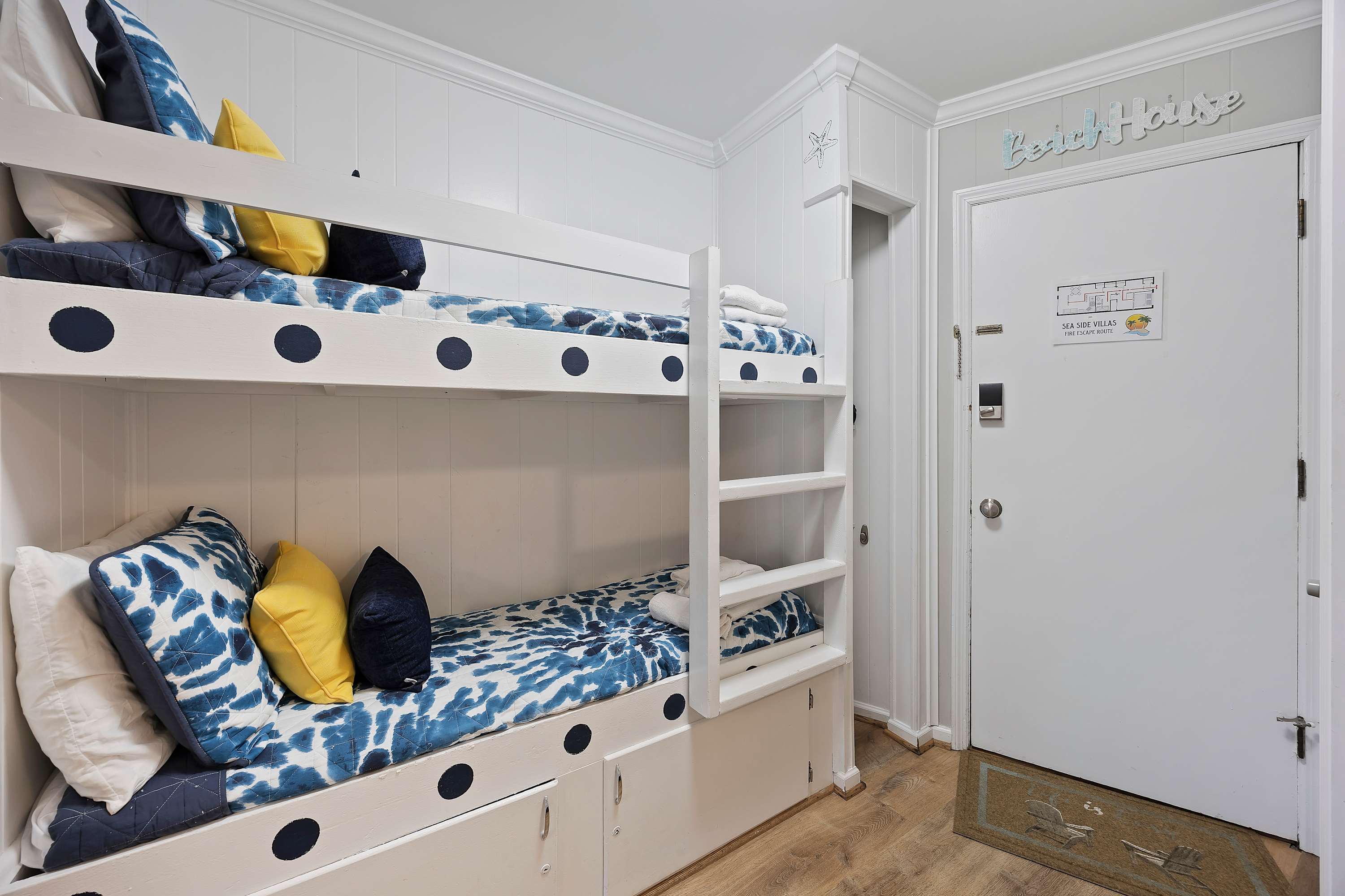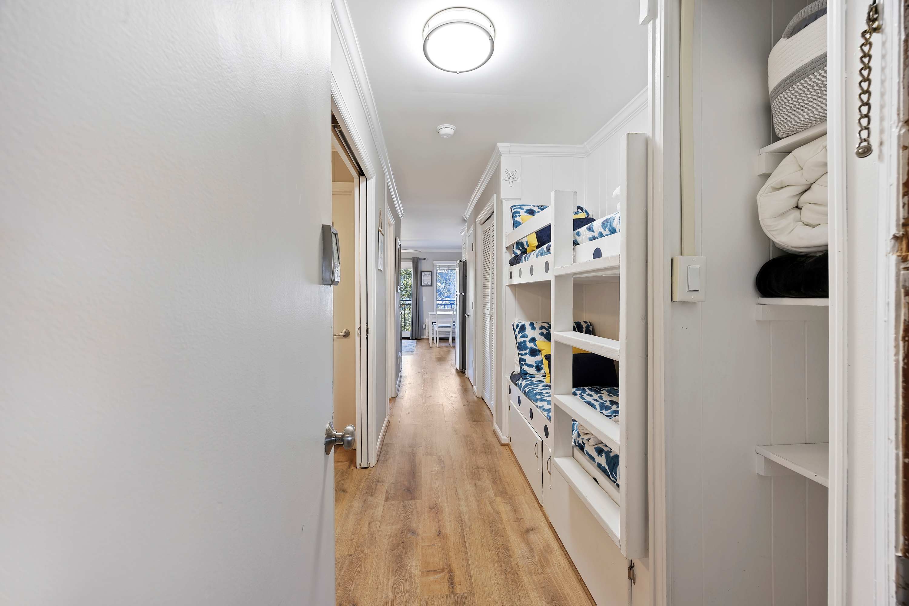 Kid-Friendly Bunk Beds: Conveniently tucked away in the hallway, perfect for little ones.
