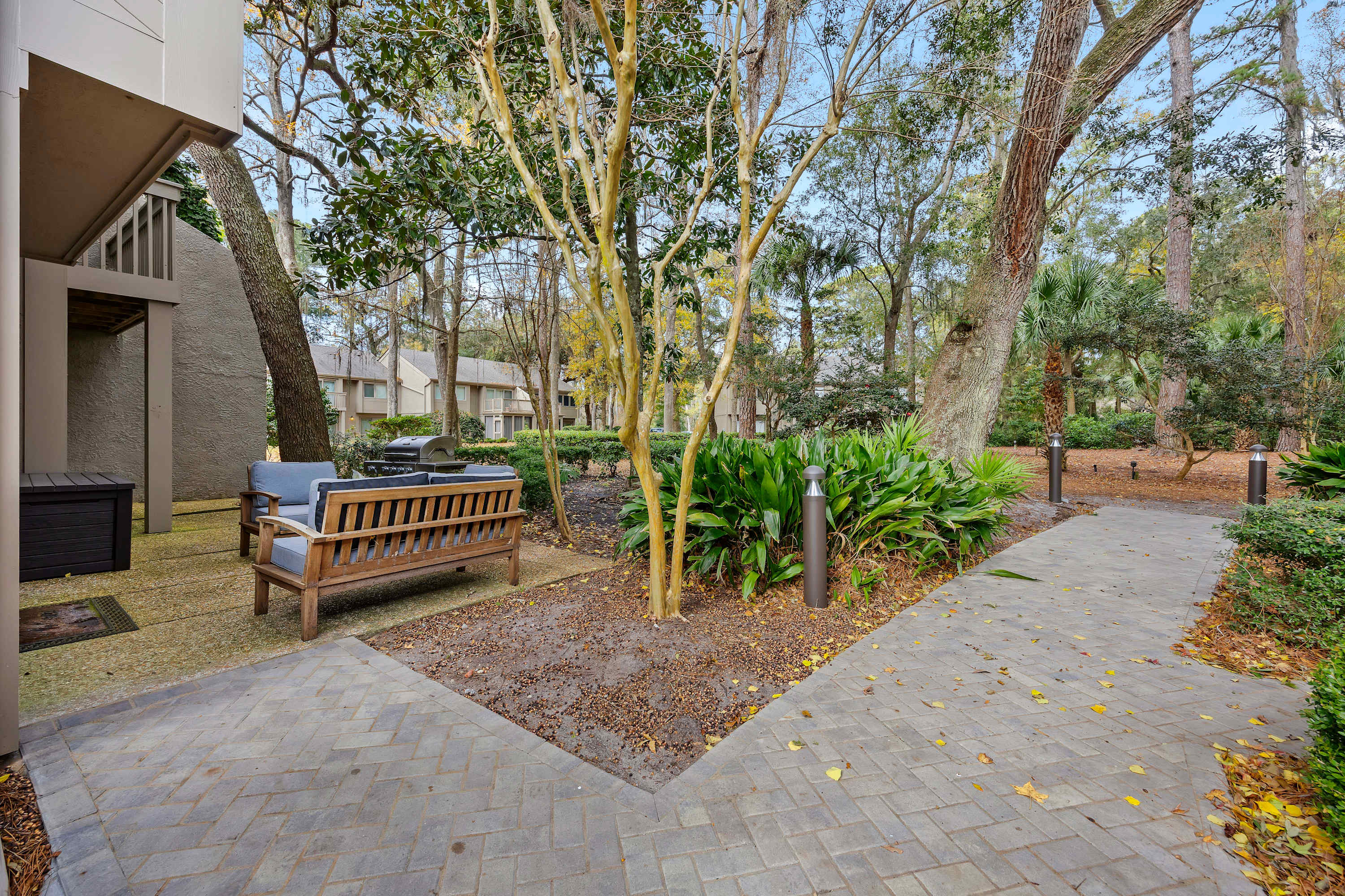 Sea Pines Trolley Access: Seasonal trolley service at the community entrance provides easy transportation throughout Sea Pines, including to the Beach Club.