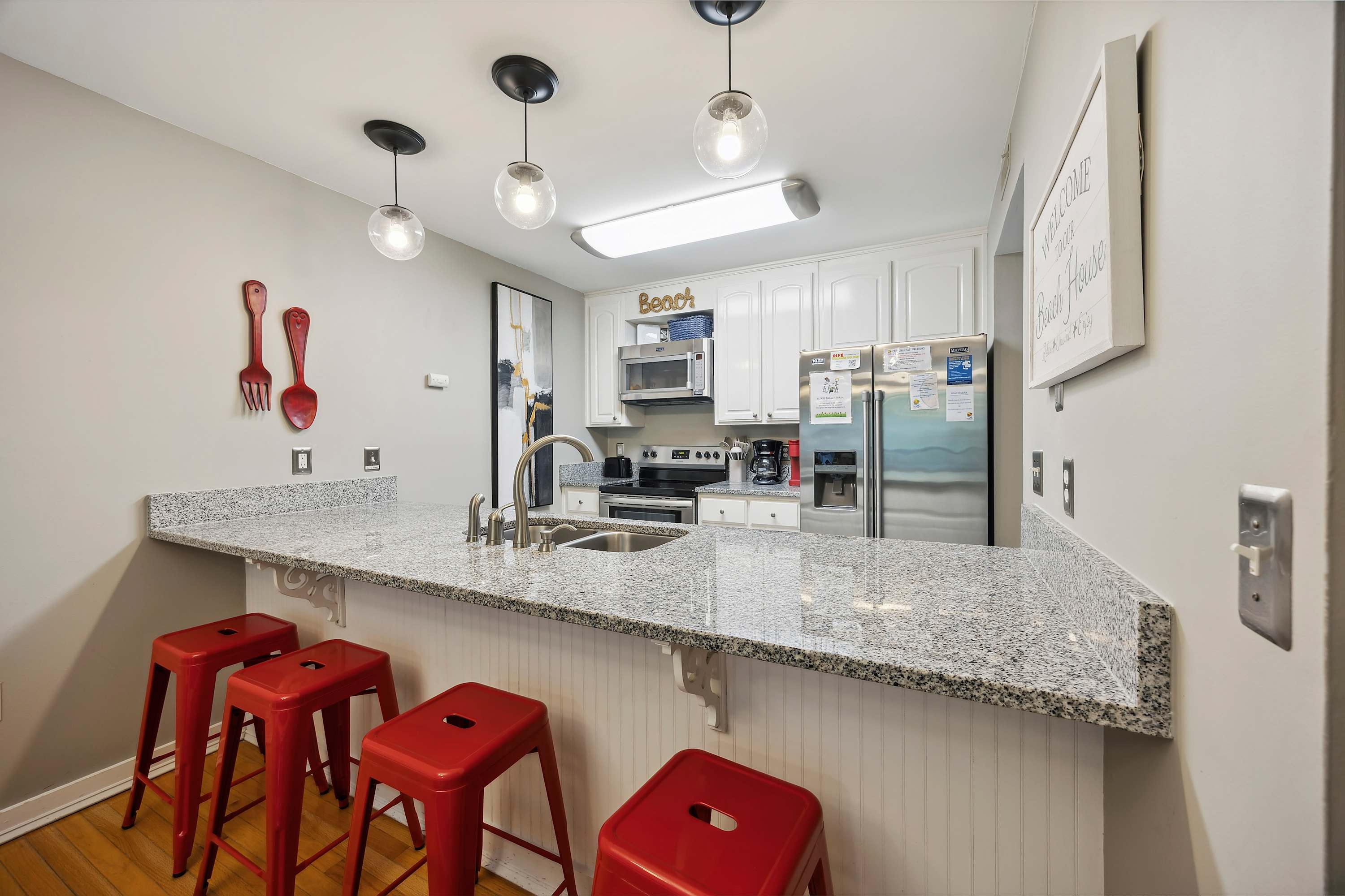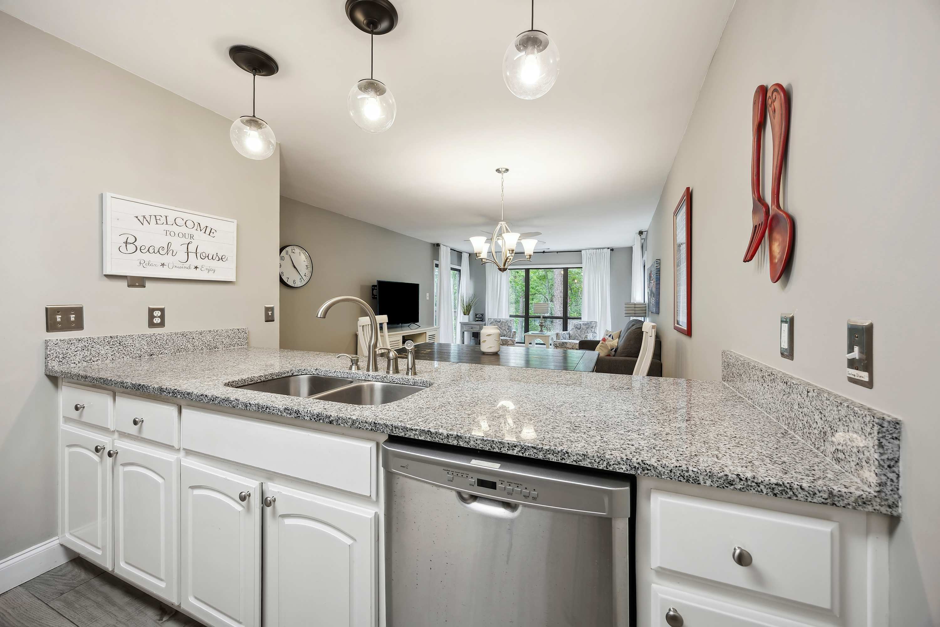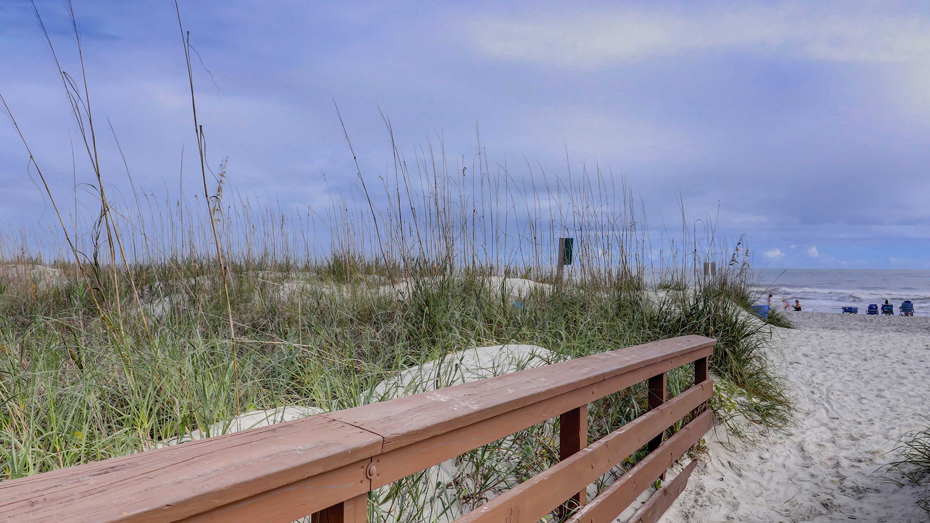 Beach Access: A short walk through the parking lot to The Dunes House, where you’ll find outdoor showers, a boardwalk to the beach, and pristine South Carolina shores.