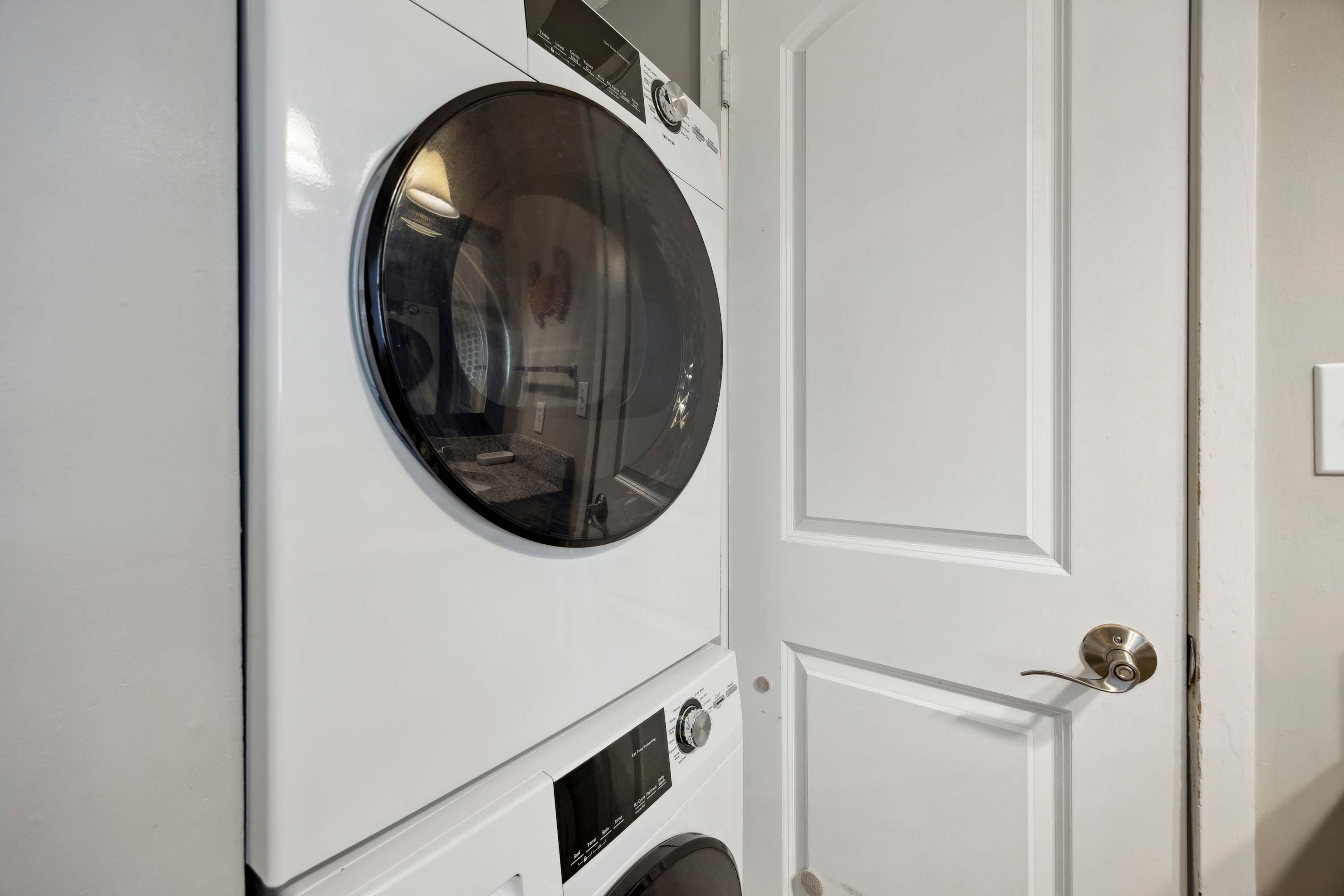 Three Full Bathrooms: Walk-in shower in the primary bathroom. Shower/Tub in the guest bathroom. A stackable washer and dryer for added convenience in the hallway bathroom with walk-in shower..