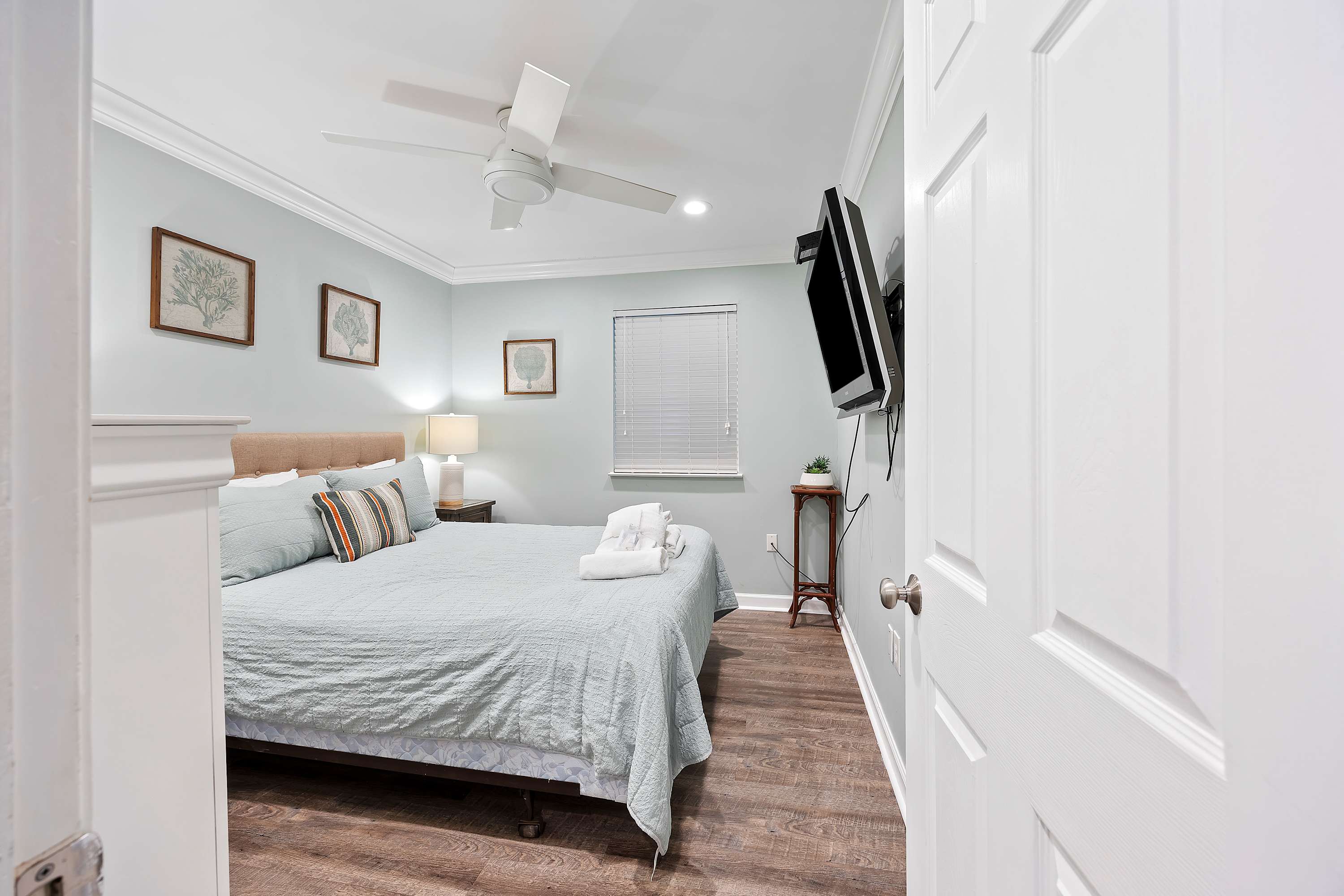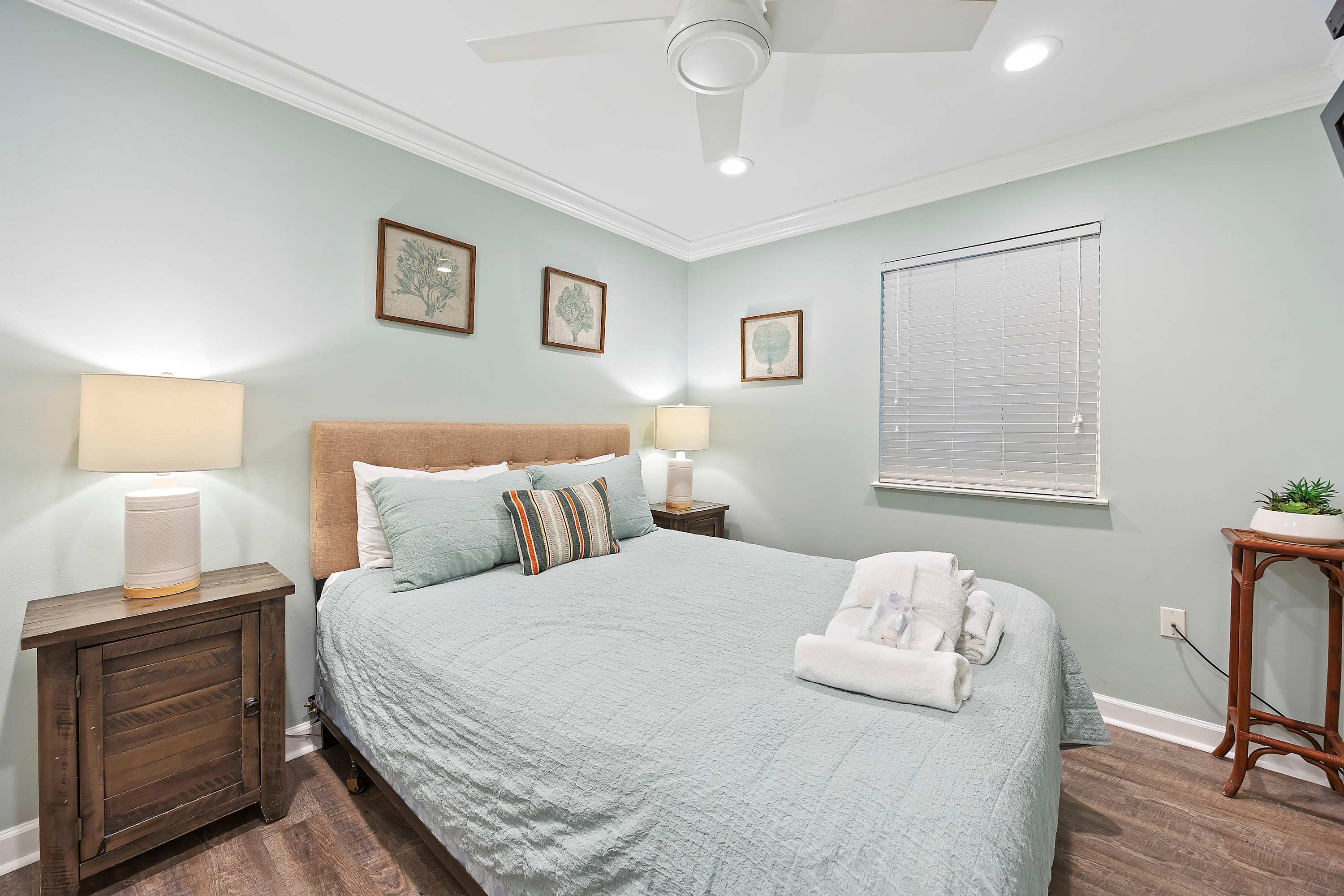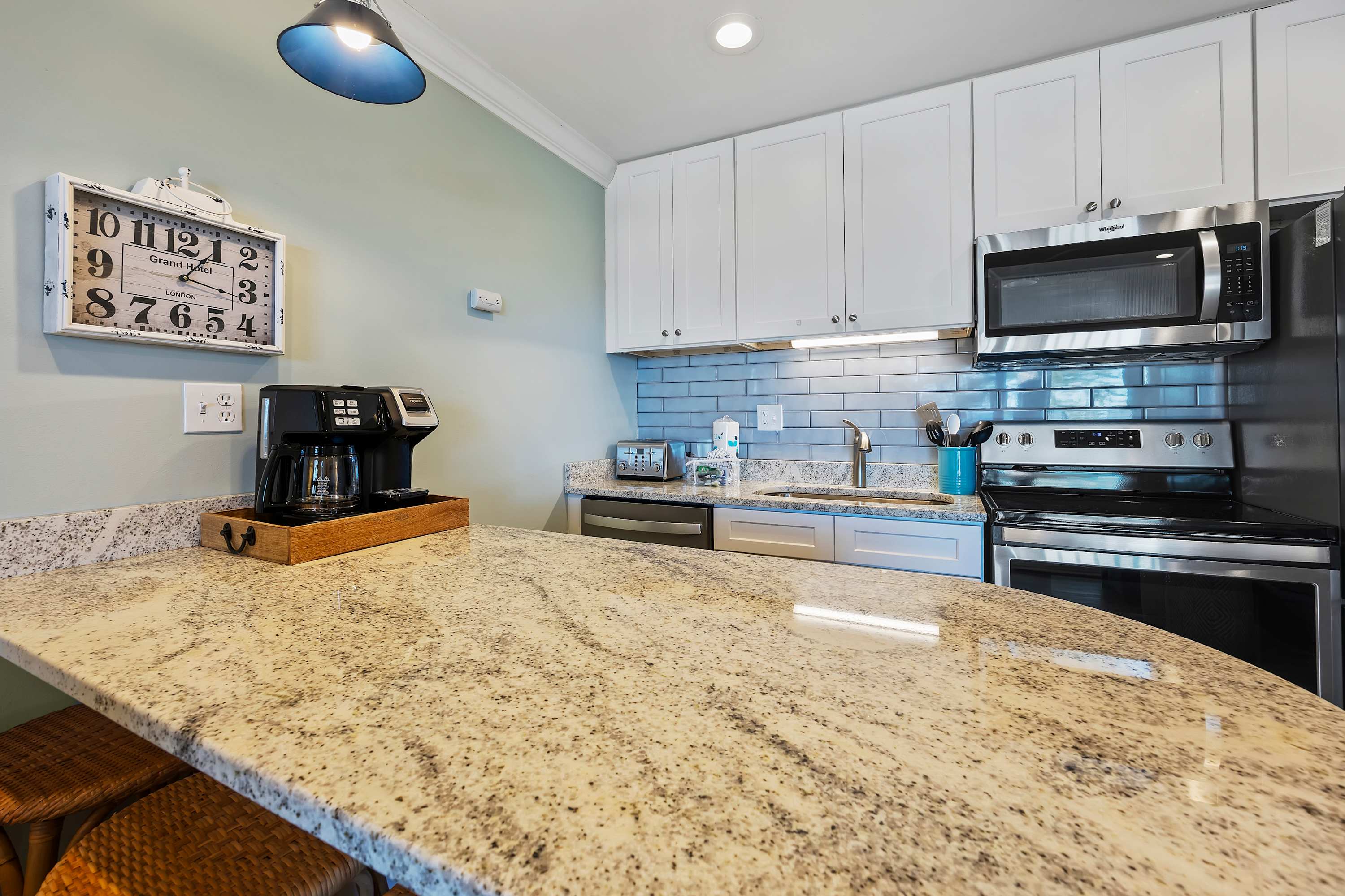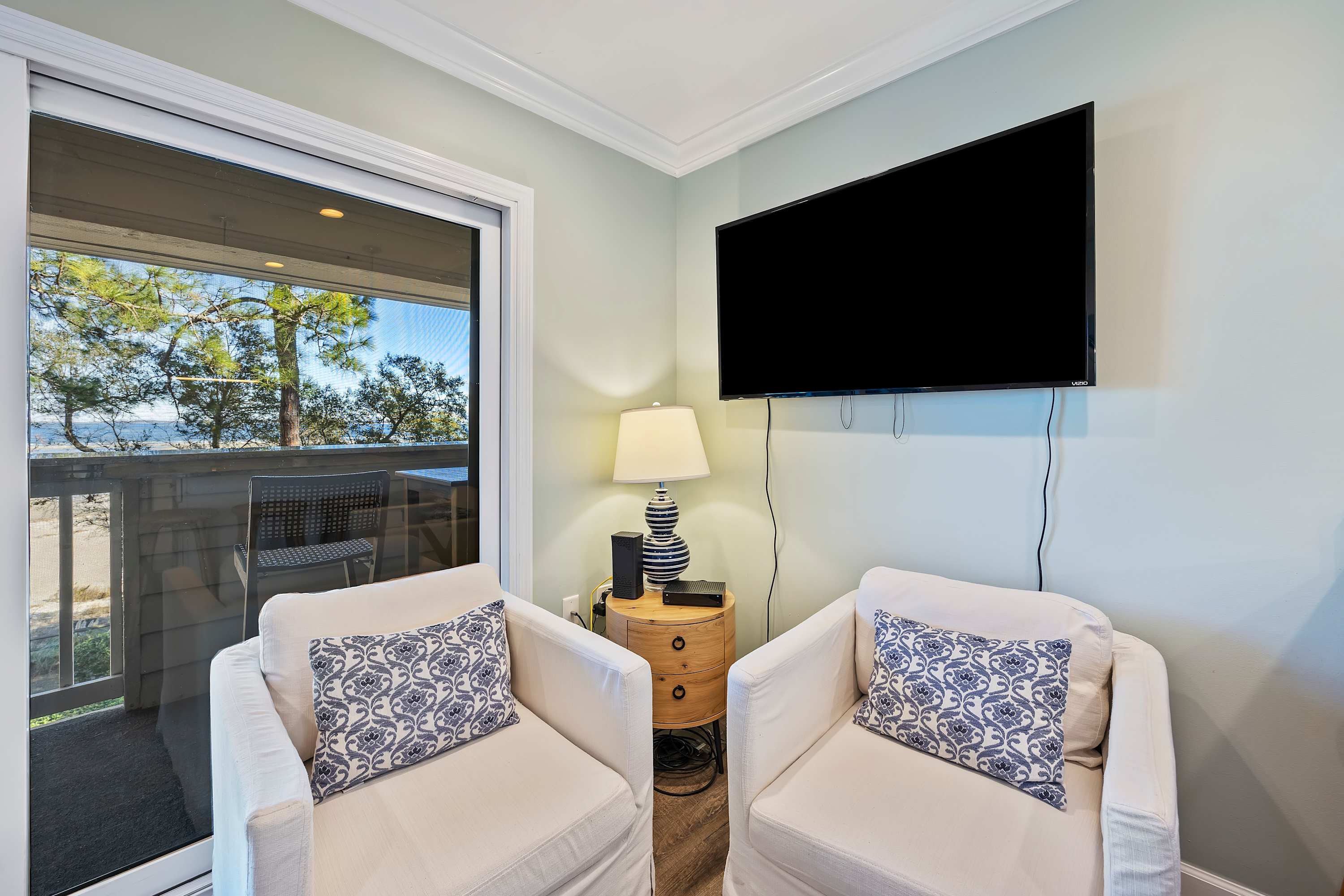 Oceanfront 1BR, 1 bath villa is ready for your romantic getaway or island escape! This beautiful beachside villa offers sunrise views of Port Royal Sound & the Atlantic Ocean. This 3rd-floor gem has some of the best views in the complex. Fully equipped kitchen w/granite counters, 1 bedroom w/all new bedding, full bathroom with vanity, only steps to 1 of the 3 pools on the property. Enjoy sunrise views from the private deck. Perfect escape in a natural setting away from the hustle & bustle of the more touristy places on the island, yet only minutes from shopping, dining & activities.This 3rd-floor villa is easily accessible by stairs from the parking lot. Enter into the hallway with the bedroom tucked away from the living space with a Queen Size bed and television. The bathroom boasts a walk-in subway tile shower. Twin bunk beds are discretely built into the hallway. The beautiful view can be enjoyed from the updated kitchen and the living area! Sunny doors provide natural light and access to the private balcony with amazing ocean views. The couch serves as twin sofa sleeper providing additional sleeping space. The villa is complete with a washer and dryer! Our villa is best suited for business travelers, romantic getaways or a couple with small children.